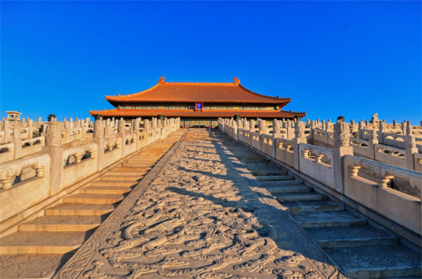 外朝:紫禁城前半部(南半部)以太和殿、中和殿、保和殿三大殿为中心,东西辅以文华殿和武英殿,统称为“外朝”,是明、清两代皇帝办理政务、举行朝会及其他重要庆典的场所。三大殿建于高8.13米的3层汉白玉石台基上。