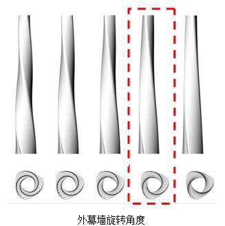 上海中心主楼的几何外形在随高度上升的过程中围绕塔楼的几何中心,同时发生旋转和收缩两种变化。对于构成主楼旋转表皮的几何元素,设计中从工程学和美学双向角度,进行了反复论证优化。