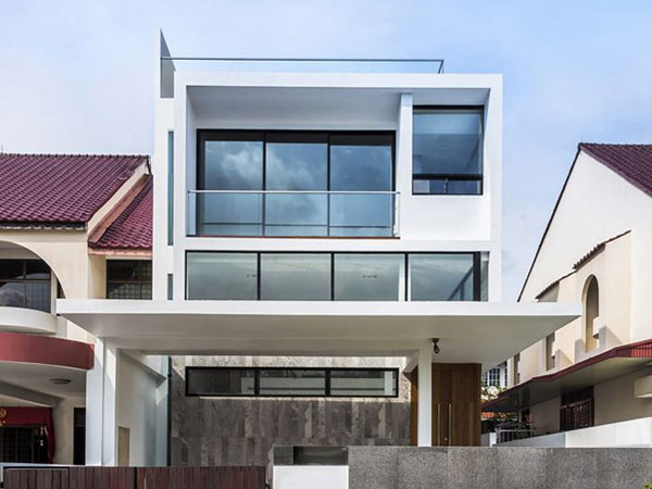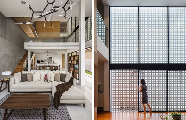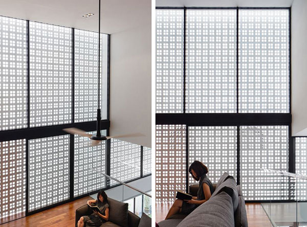 Materium设计的屏风别墅位于新加坡,别墅一侧外墙犹如一个大屏风,既可以透入光线又能提供私密性的空间。