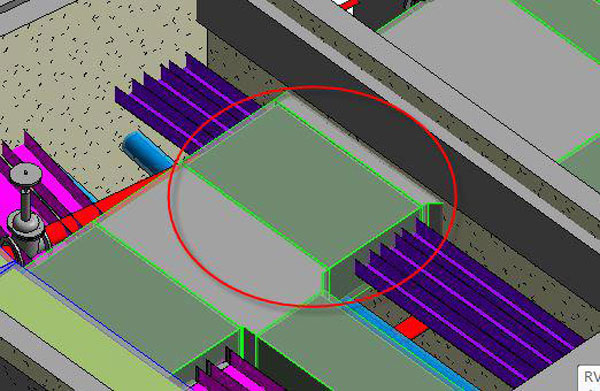比如汉街三层一处走廊,按照各专业二维设计图纸所搭建的BIM模型中,暖通、电气、给排水等专业均发生碰撞,原有的二维设计图纸由于自身的局限性,不足以充分表达此类问题,而在BIM模型中,所有信息均在三维模型中有直观的表达,这使得这类问题无法隐匿。