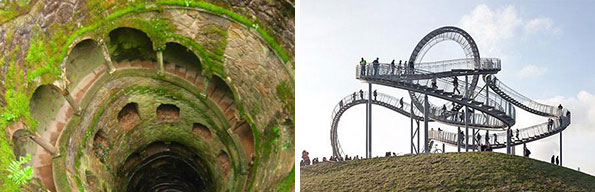 葡萄牙Quinta da Regaleira的螺旋楼梯与德国可以行走的过山车楼梯