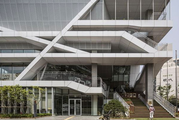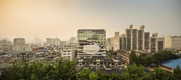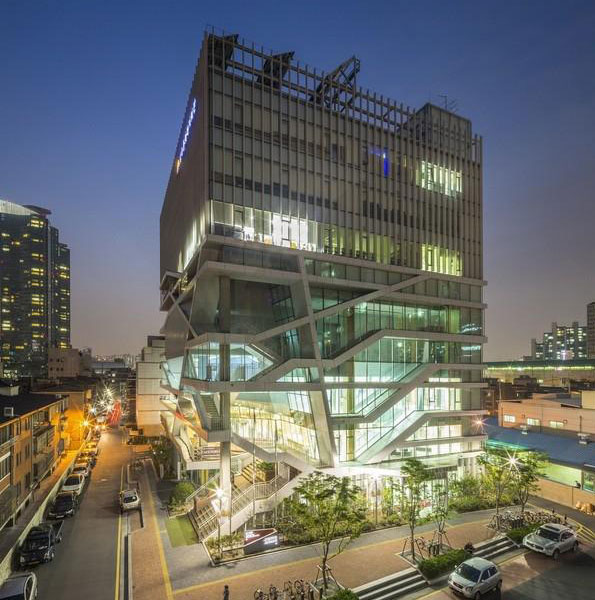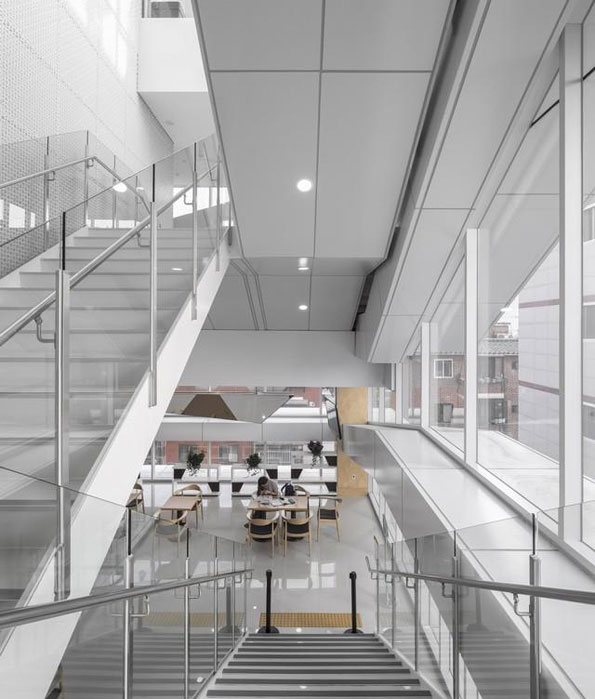 所以UnSangDongArchitects设计的这座综合办公大楼看上去几乎没有一点“政府”官方的影子,反倒像是一座城市商业综合体,有着前卫的立面造型,宽敞的共享空间,时尚材料等。