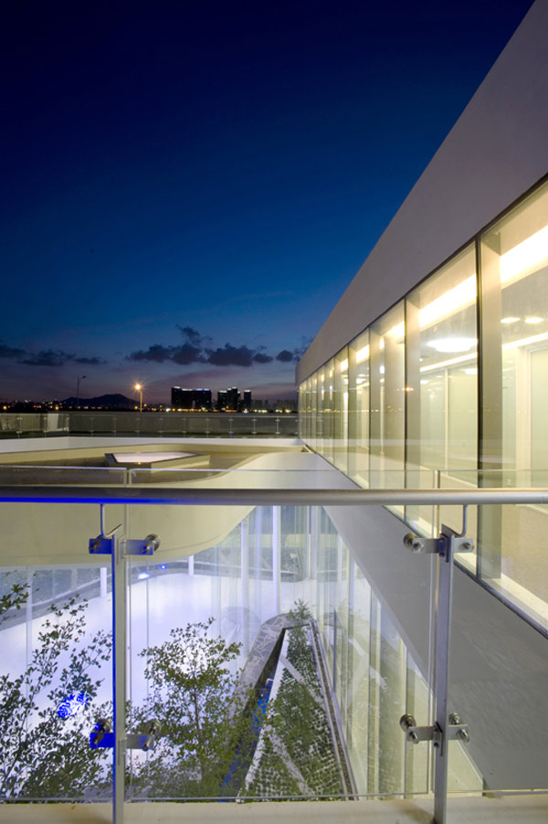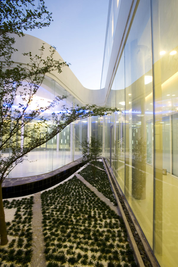 建筑流线以中国庭院的空间为主,进入展厅后围绕中庭行走,每一个空间都有很好的景观面,阳光自然地晒入庭院,走在每一个空间,都给人在室外的感觉,十分舒适。