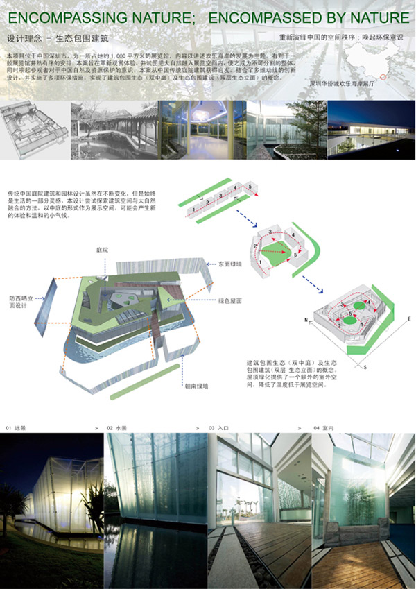 在深圳华侨城欢乐海岸展厅的案例中,以自然都市为整体设计概念,从而开启突破一般小空间中循序渐进式的展厅流线,让展厅犹如自由的街道网络,以生态绿化为街道网密不可分的一部分,让参观者在了解欢乐海岸发展的同时,体验在深圳高速发展城市中,自然资源及生态的重要性。