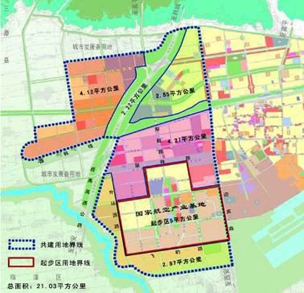 国家航空产业基地核心区规划面积40平方公里,已建成区域面积11.28平方公里,规划新建区域面积28.72平方公里。新建区已于2005年3月全面开工建设,按照国际领先标准完成5平方公里起步区的总体规划,分为制造加工、创业研发、航空博览旅游、教育培训和商务生活等不同的功能区。