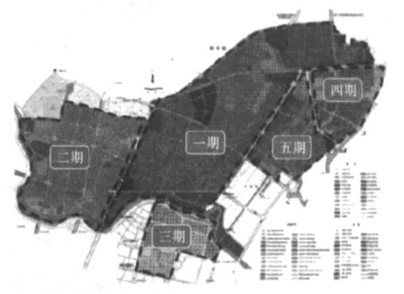 园区工业生产用地相对集中,分五期滚动开发(图1) 。