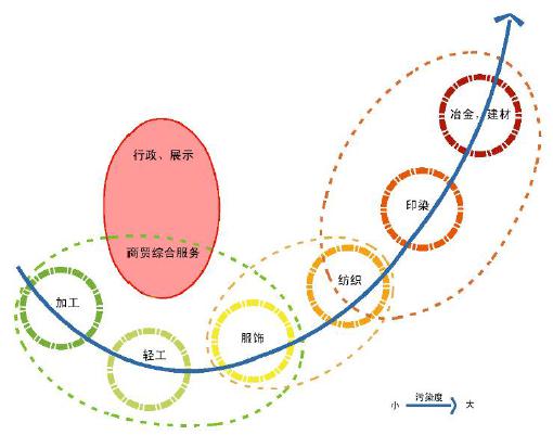 从环境保护的角度分析,对工业园中重点排污企业也应就近布局,利于集中进行污水处理。一般而言,冶金、建材、化工、塑料、皮革以及印染等需进行重点环保治理的产业门类应就近集中布局,且与居住区应形成一定的空间隔离,轻加工等小型低污染门类可分布在居住区附近。