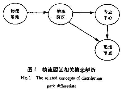 而物流基地应该是多个物流园区的集合,它可能是一个城市,也可能是一个特定的区域,它是在空间距离不远的多个物流园区发展基础上,形成的具有辐射更大范围,为更大范围提供多种专项物流服务的区域。其关系如图l所示:专业物流中心是专业性的物流园区,是为某一特定产品或行业服务,如水产品物流中心,机电产品物流中心等。物流中心与园区的关系是相对独立的关系,两者既有联系又有区别:物流园区是物流中心的空间载体,
