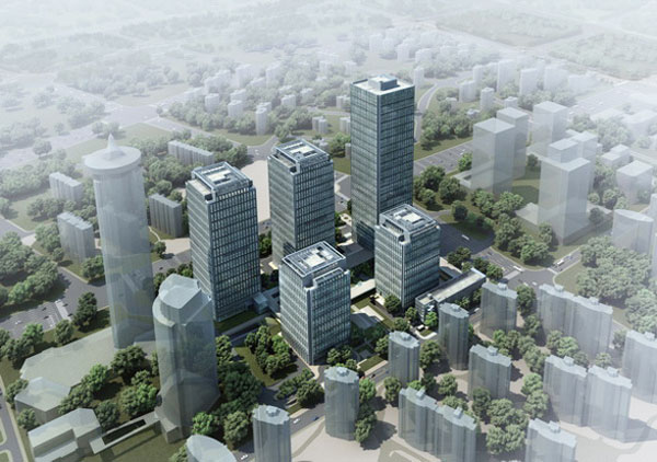 为了达到和谐的群体造型,5栋大楼造型采用大气稳重、容易互相调和的设计手法,以创造国内大型企业及外资企业的全国或区域总部基地为目标,并且建成之后对上海总部经济的发展起带动作用,从而树立起本项目在花木副中心地区的标志性地位。