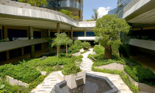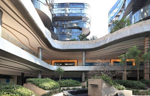 由于销售定位明确,办公大厦的核心筒设计不同于一般的核心筒设计,每个办公单元区域东西端各设置一个核心筒设计。其中一个设置了两套升降机供高层领导单独使用,另一个设置了四套升降机,在公共区域供员工使用。两个办公单元区域之间设置了一个公共的货物升降机。办公层高有4.3米,跨度为17米,设计为大跨度无柱空间,创造出一个宽敞,明亮,通风的办公区域,可以在各种布局里灵活布置。
