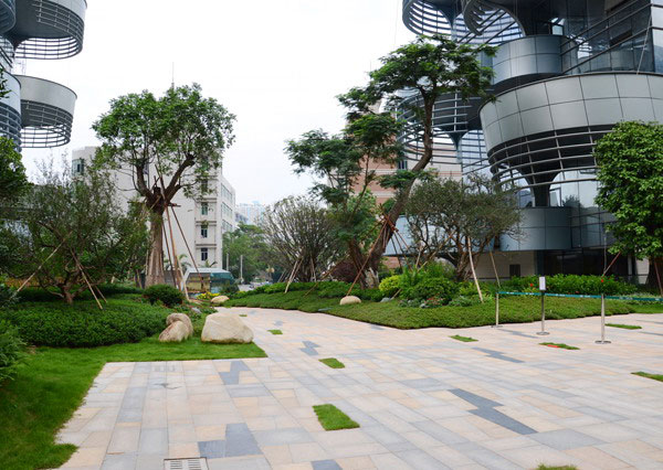 该项目的另一独特功能是,每个办公单元区域的东西向设计了两个大阳台空间(35-80平方米)。阳台交错布置,属于赠送的面积。阳台上设置了部分结构降板,以利于种植花草树木。这个扩展的阳台空间,创建了丰富的绿色景观,是员工休息、放松和社交的最佳活动场所。