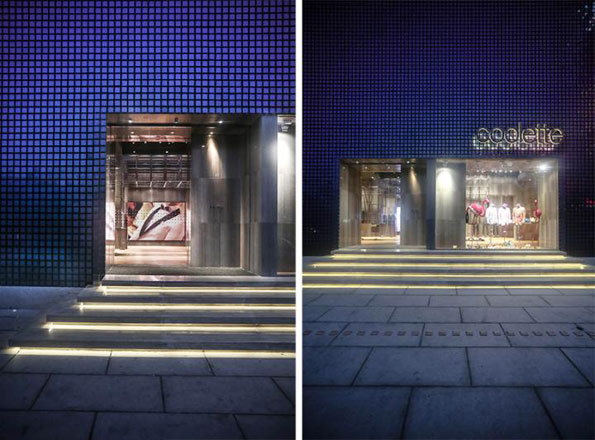 今年八月,由三月设计marchdesign为 coolette 高级制定男装打造独特的店面设计落成,让它拥有动感的外观和精致的室内。风的情绪是本项目的灵感来源,通过3000块可以随风前后摇摆的变色不绣钢钢板,来映射“时尚潮流”的变迁。无风时平如镜面,微风时如波动的湖面。每分每秒都有变化,象征潮流的瞬息万变,记录着时尚的情绪,呈现东方时尚美学。