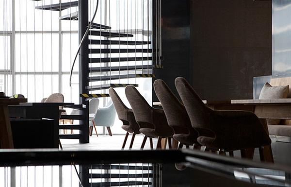 尊重“整体、统一”的设计概念绝不意味着对细节的轻视,相反,细节的设计在整个项目中扮演着重要的角色。就拿供暖系统为例,我们将暖气散热片隐藏于木质平 台下面,将出风口嵌入阶梯平台外缘处,高度在人体膝盖以下,这样暖风就能够向上散发,而精心设计的“割裂式”出风口也和谐的成为整体艺术外观的一部分。这 样服务设施便与造型完美融合,同时,体现了“整体、统一”的概念。除此以外,原木地板与水泥地面的衔接处、坚(水泥、原木地板、及黑钢)与柔(纺织布料) 的对比等等都淋漓尽致的体现了对于细节的思量。