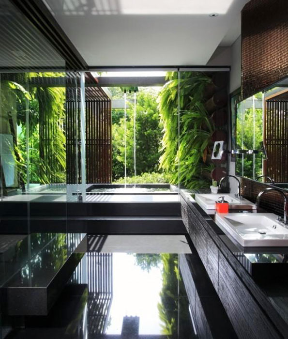 印尼摄影师Gala Indiga拍下了这个现代感十足的“丛林”浴室。