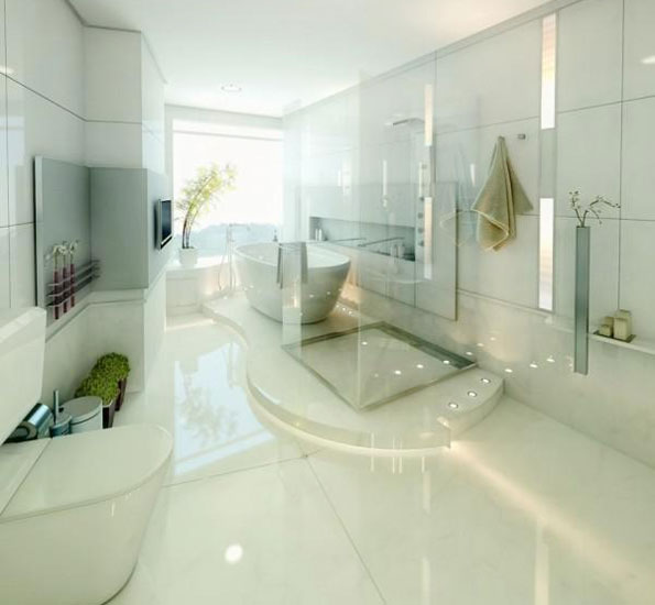 在这个光线充足的浴室里,流线形的独特浴缸一下子就能把客人们的目光吸引住。