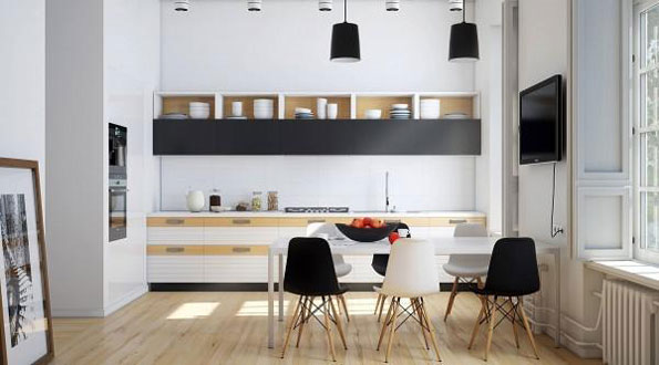 黑白色搭配的厨房设计,加上窗外的阳光,无论对于男士还是女士而言,这都很有吸引力呀!