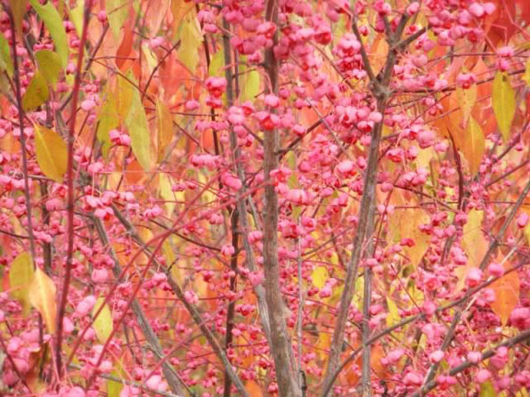 卫 矛:卫矛秋叶红艳耀目,果裂亦红,甚为美观,堪称观赏佳木。卫矛新叶亦红,夏季适当摘去老叶,施以肥水,可促使再发新叶,增加观赏期。为使秋叶及早变红, 夏季应择半阴处放置,使叶质不致增厚,易于形成优美红叶。落叶后,枝翅如箭羽,宿存蒴果裂后亦红,冬态也颇具欣赏价值。
