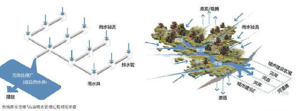 雨水管理景观设施是低 影响开发规划设计与实施的基本单元。低影响开发实现的核心途径即将各种雨水管理景观设施整合规划设计于场地中,建造一个由点状、线状、面状雨水管理景观设 施构建的景观网络,这个雨水管理景观网络具有灵活的延展性,既可以是某一种雨水管理景观设施单体的应用,也可以是多种雨水管理景观设施的整合应用,因此这 种雨水管理景观网络可以嵌入城市不同层次、不同规模地块中,获取与利用自然景观的生态雨水管理功能,降低土地开发建设对自然水文循环、水体质量以及其他生 态环境的负面影响。其中,这些雨水管理景观设施“捕捉”与“处理”雨水使用的主要物理、化学、生物过程主要包括以下六种: