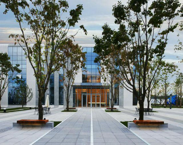 道路结构采用外环+内部路网格局,外环路作为园区的主干路,满足大部分货流的运行需求,内部路网主要为小车和人行使用。停车方式为全地上模式,利用外环路一侧设置大部分停车位,剩余部分分散设置于内部路网沿线。