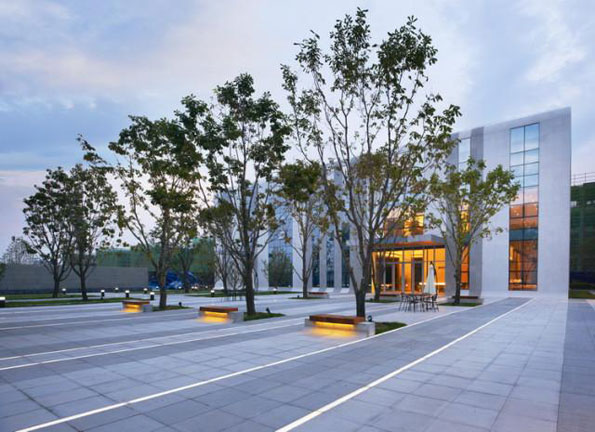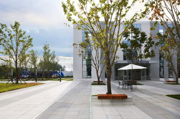 为了展示本项目的整体特征,方案将1.1期选址于科技大道和规划三路的交汇处,包含了整个入口区和研发、生产的所有典型单元组团。规划结构将研发组团结合入口区设计于用地南侧,临科技大道展开;生产单元组团设计于北侧。南入口面对主入口区,作为整个园区的形象入口;北入口设置于安康路,作为功能性入口。南北入口之间,设计园区的主景观轴线,沿景观轴线建筑间距适当放大,构成园区中央花园。