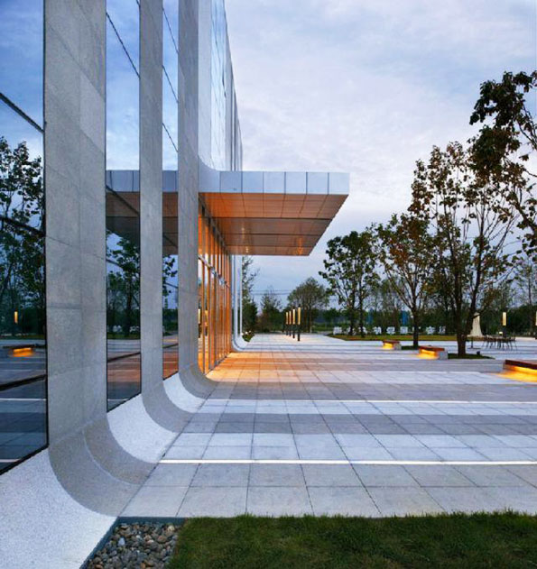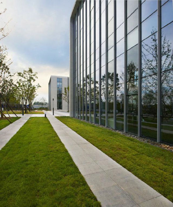 本项目的主要挑战是,在满足低造价+快速建造的前提下,将入口区做出良好的品质感,以提升整个园区的产品定位标准和可展示性,带动产品招商活动的展开。对此,项目从三项原则入手展开设计:原则一强调模数化的设计控制方法,从平面柱网系统到立面幕墙系统再到景观系统,提出了一套完整的模数控制原则,以提高空间和材料的使用效率,协助建立起模数化的建造系统。原则二建筑、景观一体化设计,从概念定位开始推进建筑与景观一体化的系统构成,以强调环境的综合体验效果,提升建筑与景观系统的整体品质感。原则三 采用低技高效的材料和构造技术,从建筑到景观系统均采用当地生产的易于采购的材料和部品,并且强调构造语言的简单通俗,以有效缩短工期降低造价,并提高可维护性。通过综合运用这些原则,很好地满足了项目需求,提高了设计的逻辑性和完成度。