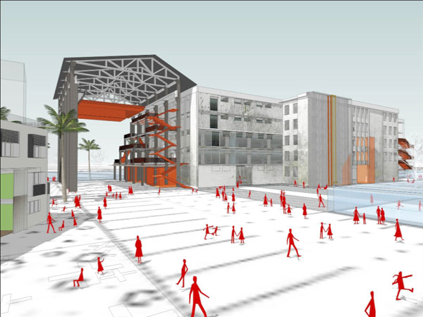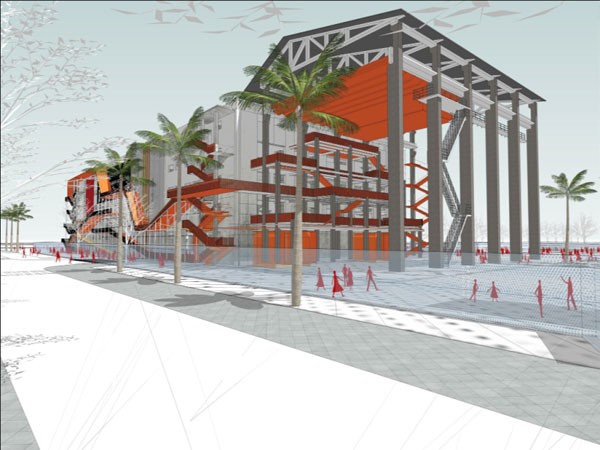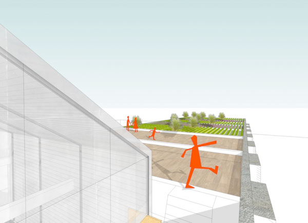 另外,在对珠三角地区传统农业的研究基础上,3#楼的屋顶绿化也在总平面上与周围的地面景观有所结合,创造“桑田浮城”的农业景观概念。设计力图在这个蛇口快速发展所遗留下来的工业废墟上,实现“天人合一”农业思想的回归,重新审度人、社会、自然三者的关系。