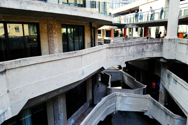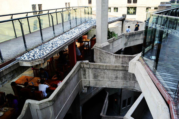 中心圆1-3层,是当初进行屠宰工艺的车间。中心园三层之间靠X形的物流楼梯和旋转弧度很大的法式旋梯相通。这三层是创意项目活动区,致力于把中国甚至全球最具创意的活动带到上海来,各种的艺术类活动、公益活动会在这里举行,为公众提供一个零距离接触艺术和享受时尚生活的目的地。