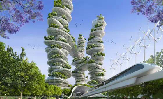 该建筑事务所提出了“2050年巴黎智能城市”设计方案,其中包括8个高科技建筑塔。