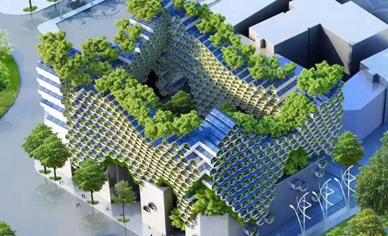 同时,蜂窝塔建筑还具有绝缘性,能够减少噪音,屋顶安装热量和光电板,可用于制造电能。