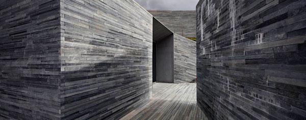 鉴于周围环境强烈的影响,项目重点关注新体量插入的问题,这个体量呈现出长长的由页岩定义的墙壁,它在地面之上形成尖锐的弧度。这里既有的和新增的元素形成一种张力,一种对抗的关系。酒店的空间极度克制,不管是空间上还是形式上,空间的形成取决于功能,取决于光线和视野,更重要的是取决于舒适度。