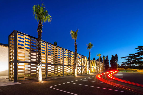 法国盖辛 Maitres酒庄是由Vincent Coste设计的Maitres酒庄,位于盖辛,其十字路口通往省特罗佩海湾。该项目包括葡萄酒销售楼及建筑立面的修复。一个宽阔的金属结构内使用了木质饰面(红雪松木),从而让阳光渗透,在视觉上将该建筑与周边现状建筑达到统一的效果。