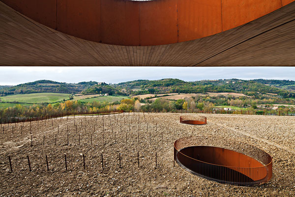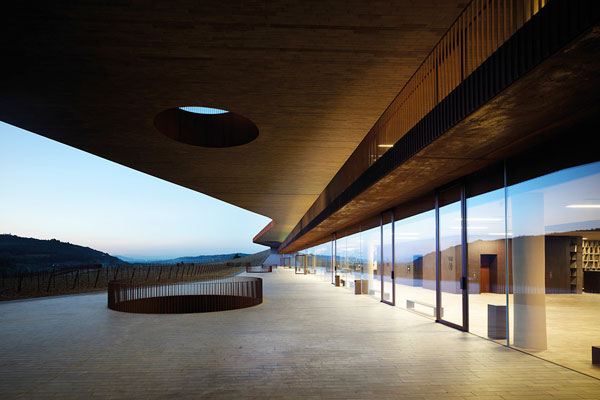 ΪÁËÔËÓõäÐ͵Ľ¨Öþ±í´ï·½Ê½£¬½¨ÖþÁ¢ÃæÑØ×Å×ÔÈ»ÆÂ¶ÈºáÏòÑÓÉ죬бÆÂ ÉÏÊúÁ¢×ŵÄÒ»ÐÐÐÐµÄÆÏÌÑÌÙ½«Á¢Ãæ·Ö¸ô¿ªÀ´£¬ËüÃÇÓëÍÁµØÒ»ÆðÐγÉÁ˽¨ÖþµÄ¡°Îݶ¥¡±¡£ ¿ª¿Ú»òÇпڲ¿·ÖСÐÄÒíÒíµØ½Ò¿ªÁ˵ØÏÂÄÚ²¿¿Õ¼äµÄÃæÃ²£º°ì¹«ÇøÓò£¬ÅÅÁÐÈç ·ÕÏÉÏ·½µÄ¹Û¾°Â¥£»ÆÏÌѾÆÉú²úÇøÓòÑØ×Åϲ¿½á¹¹ÅÅÁУ¬¶øÉÏ·½ÔòÊÇ×°Æ¿ºÍ´¢´æÇø¡£³ÉͰµÄÆÏÌѾưڷÅÔÚ¾Æ×¯Òþ±ÎµÄÖÐÐÄλÖã¬ËüÃÇÔÚÕâÀïÂýÂý·¢½ÍÄðÊ죬Õâ¸ö¹âÏß »è°µ¡¢³àÍÁÖþÔìµÄ¹°¶¥ÓªÔìÁËÒ»ÖÖÔÏÂɸУ¬ÔÚÕâÀïÈËÃǸÐÊܲ»µ½¿Õ¼äµÄÉñÊ¥£¬½¨Öþʦ²¢²»ÊÇ¿ÌÒâµØÏëÈùâÏßÕÕÉä²»µ½ÕâÀ¶øÊÇΪÁ˱£Ö¤ÀíÏëµÄʪÈÈ»·¾³£¬È·±£ÆÏÌÑ ¾Æ²úÆ·Äܹ»ÂýÂýÄðÊì¡£