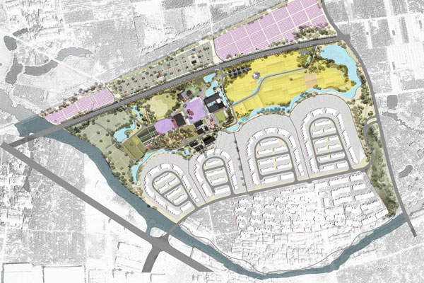 设计尊重场地的基底条件,延续基地水陆交错、临河而居、田地包绕的田园特征。将农田及种植、水域及灌溉、池塘及养殖、村庄及居住、道路及交通五大部分田园基底要素,与未来发展需要的乡村空间、田园小镇空间、有机高效农业生产展示空间的布局相结合,探索城市的经济要素、文化要素向“乡村”空间渗透过程中田园空间发展方案。项目总体规划与设计已持续了两年的时间,项目一期建设已初步成形,二期规划设计和项目建设仍在完善。
