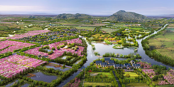 无锡市惠山区阳山镇,以水蜜桃闻名于世,地处城乡经济结合最紧密的长三角城市群地区。镇内拥有亿年火山、万亩桃园、千年古刹、百年书院,生态自然景观基底优良,以大小阳山为核心的旅游度假产业方兴未艾。在东方园林的策划与引导下,田园综合体的发展模式和空间构成结构开始在其镇域空间发展格局中延展,阳山镇的城乡空间有望向着更加有机疏解和高效融合的方向演替。