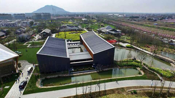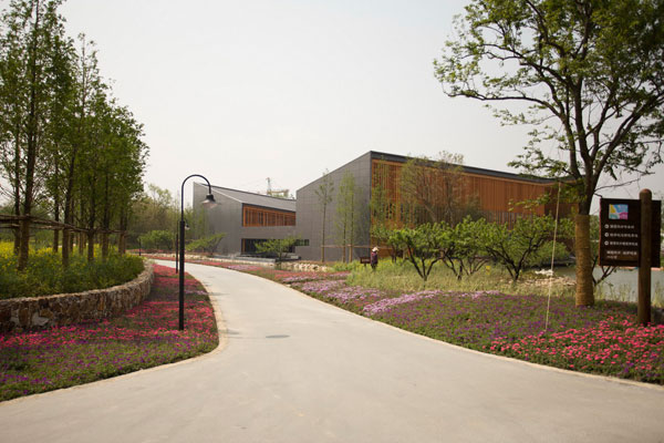 田园生活馆位于首期示范区内。示范区规划保留原来的空间肌理和村庄规模,最大限度利用现状道路和站点。示范区内散落布置10座独立式建筑,其中7座是保留旧建筑,3座是新建建筑。新旧建筑相互呼应,形成新的景观意象,创建一个田园般的生活场景。