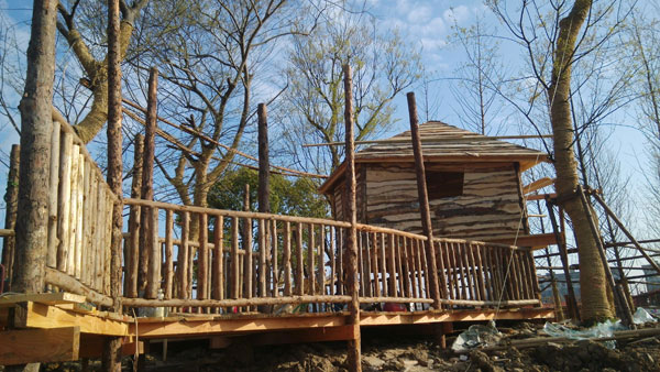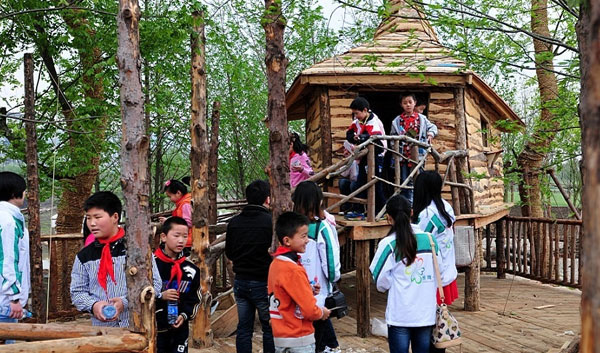 是国内首创的全手作乐园。回收木材再利用、老旧建筑材料再生、老木船,拖拉机,帐篷再创造……通过一系列的设计与建造,在地形高差上创造出了益于儿童游乐的活动空间。以自然生态为理念,乐园选择泥土、木头、树桩、树枝等原生材质和循环材料作为构造材料,通过纯手工打造,营造出完全不同于城市“钢筋水泥”的“绿色王国”。