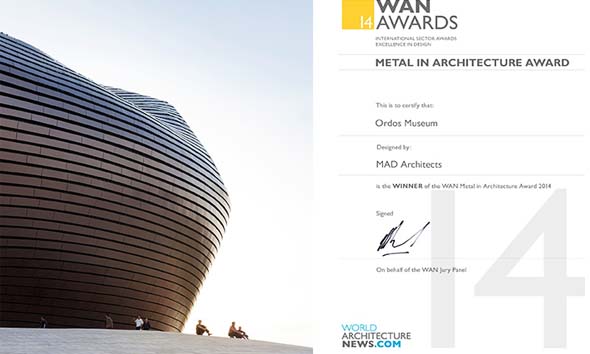 2014年度WAN(世界建筑新闻奖)“建筑 – 金属”奖揭晓,鄂尔多斯博物馆脱颖而出成为获胜者...