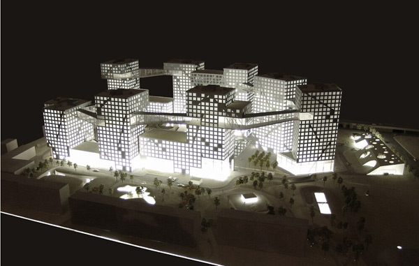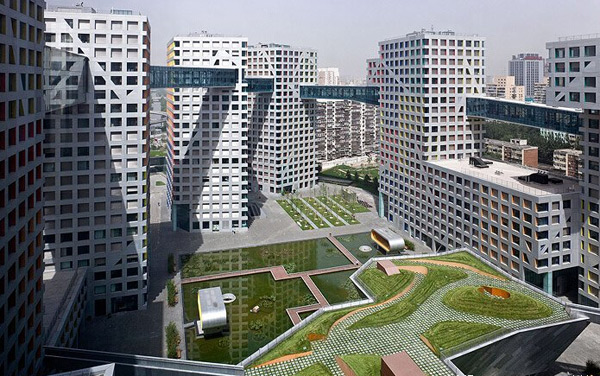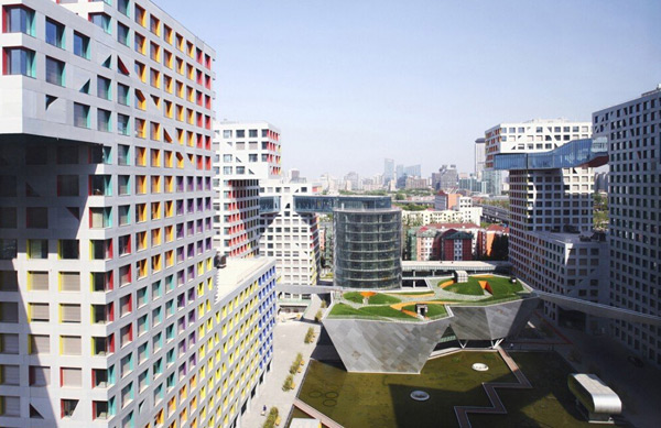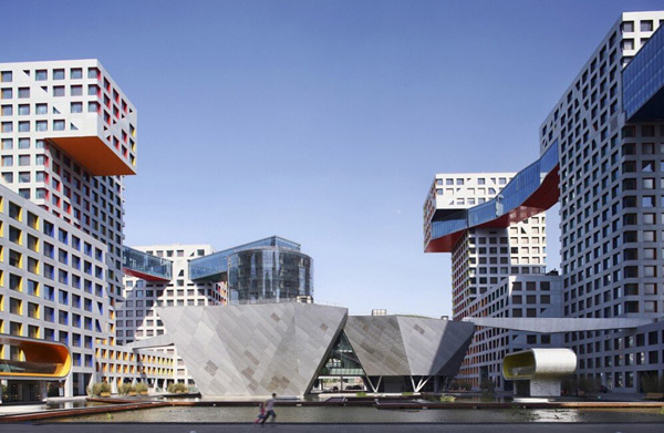 当代MOMA由纽约的哥伦比亚大学教 授Steven Holl设计,项目规划概念是BEIJING LINKED HYBRID,在建筑艺术方面实现了世界的唯一,更加充分的发掘城市空间的价值,将城市空间从平面、竖向的联系进一步发展为立体的城市空间。