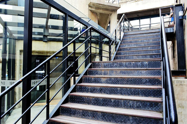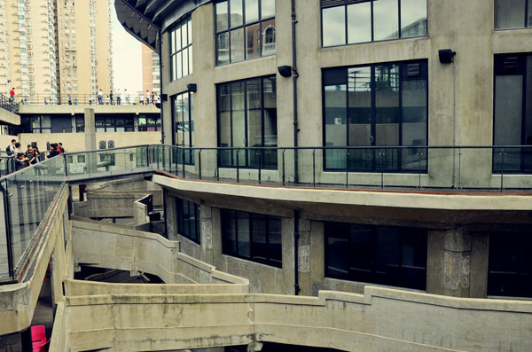 牛道是1933老场坊的建筑特色之一,当时生产流程和工艺已经跟国际接轨,实行人畜分离的制度。便于动物行走的牛道经过特别的防滑设计,道面粗糙不平,配合有分流作用的廊桥,使整个生产工艺井然有序。如今的1933老场坊依然保留了这一原先的建筑特色,游客拾步而上,依稀间仍可感受七十多年前的风貌。