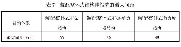 7、装配整体式结构伸缩缝的最大间距宜符合表7规定。