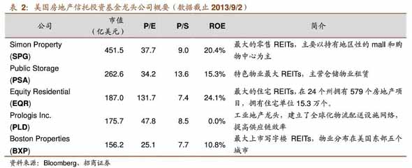R E ITS是一种投资基金,通过持有并出租物业获得稳定回报,物业类型涵盖零售、住宅、工业地产、写字楼等,并实现资产的保值增值,属于房地产经营业.,美国RE ITS的资产规模要比之前两类企业大得多。具体REITS的现状将会在本报告末详细分析‘。