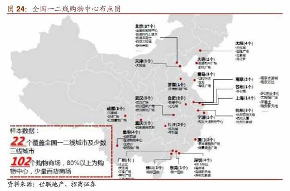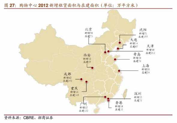 〔1)规模快速扩张:截止至2011年底,全国购物中心总量将达到2500家,预计到20 15年,全国新增购物中心将超过1300家,现阶段全国各大城市都掀起建立购物中心的狂潮,根据世邦魏理仕的调查研究,全球城市购物中心在建面积前十位的排名中,中国城市占据7位,其中成都以252万平居首,比所有86个欧洲城市在建面积总和多;.在总共参与排名的180个城市中,中国城市占据一半排名。