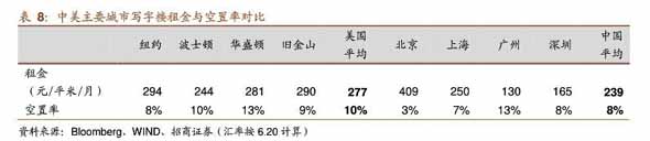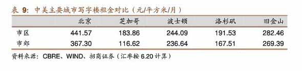 从美国重点城市写字楼市场的租金对比情况来看,大部分城市市区与市区的租金相近。目前由于北京金融街与CBO空呈率较低:未.未几年核心地区供应量很有限,这给新兴商圈带来非常好的发展机会.望京、燕莎、以待开发的丽泽商务区陆续兴起,未来租金有望上升。未来随着市郊供给量土升,更多企业考虑搬移至租金较便宜的其他地段,核心地段空呈率将有所回升。