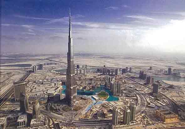 这是吉隆坡的双子塔(见图8),当时在金融危机的时候,建造这个塔面临着很大的争议。但是事实证明,它对马来西亚吉隆坡超越其他城市成为和新加坡并驾齐驱的城市还是起到了很大的作用。这是迪拜的哈里发塔(见图9),这个建筑的体量就不用说了,室内购物中心是全世界最大的,酒店是世界上最高端的,几尽人类对奢侈生活的想象。