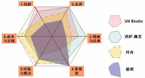 “过程管理”基本分为合作意愿、沟通途径及配合能力。考虑是境外大牌公司,对于本项目是否重视(意味着实际投入人手的质和量),是否在中国有实际经验和工作效率就尤为重要了。这是关于设计可实现性问题的考量,很多项目因此吃过不少亏。所以“重视度”和“经验与配合”入选第四、第五维度。