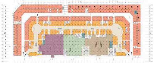 传统的商场直线式的动线在新的购物趋势下基本是不太可取的。上图是南京水游城的动线组织,它的动线非常有趣,通过它的主动线,有多个广场,同时能够把人流引入到中间的广场,另一方面也有一部分的次动线,对主动线进行补充,使得所有的商铺规模和面积比较合适,另一方面也能够让人在整个动线的走动当中找到足够的乐趣。