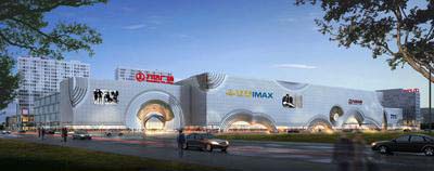 外立面在设计风格上突出时尚、现代的感觉和简约明快的国际化风格,造型上由一组简洁、纯净的矩形体块组合而成,设计母体来自“烟雨江南”意象中“水滴”落水形成的涟漪。建筑体态挺拔硬朗,建筑气质清新自然。高层部分由于成本控制,主要采用窗墙体系,仿石涂料为主,暗纹图案与大商业呼应。塔楼与商业裙楼由表皮肌理的一致性巧妙地连贯成一体,使松江万达广场这样一个体型巨大的城市综合体更加一体化,形成松江新区的一个地标。在设计管控中,对内装、景观与夜景三个专项设计也力求呼应建筑外立面的创意,提炼水滴的主题元素进行合理设计。