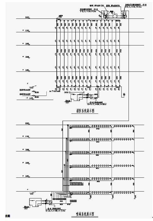 消火栓系统:在地下一层消防水泵房内消火栓泵直接抽吸消防水池储水,通过供水管网、消防水泵接合器及室内消火栓供消防水。