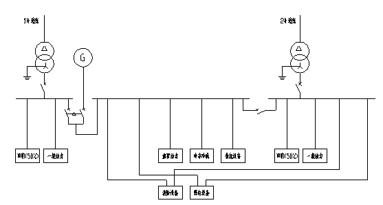 大型超市的用电设备主要为空调机组、空调器、水泵、照明及生鲜动力等,其中消防泵、喷淋泵、防火卷帘门及排烟风机等与消防有关的电源属于一级负荷,营业区照明、事故照明及弱电电源为一级负荷,自动扶梯为二级负荷,其余均为三级负荷。因此一般要求地区供电部门提供两路10KV电源作为主电源,在变配电所设置两台变压器并设置低压联络,在此基础上可根据业主要求再增设柴油发电机作为备用电源。柴油发电机容量包括超市内冷冻冷藏设备、弱电设备、生鲜加工区内重要的加工设备、以及超市物流系统所使用到的设备和其它业主所要求的设备,这主要是考虑到停电情况下超市虽然无法正常营业,但仍需维持正常货物入库和防止已有冷冻冷藏食品的变质,将停电的损失降到最低。典型的电力系统如图一所示。