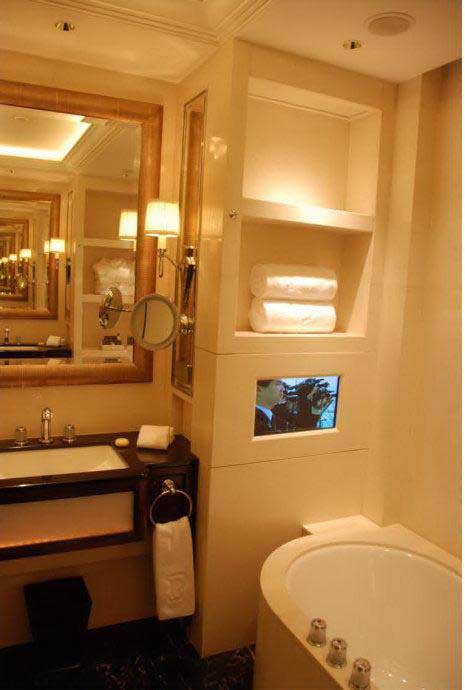 图2 上海半岛酒店标准浴室,浴缸旁设有嵌入式电视
